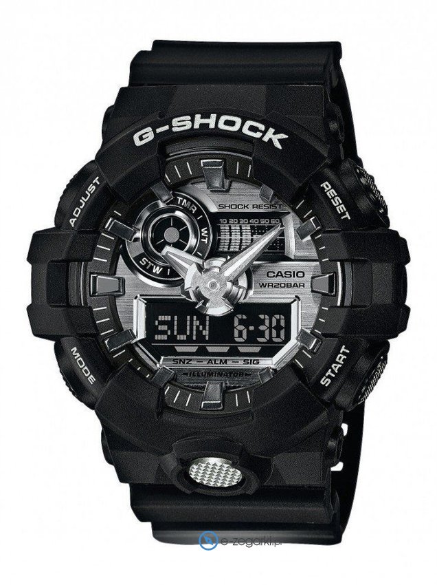 Zegarek męski GA-710-1AER marki Casio to dobre połączenie funkcjonalności i modnego wzornictwa. Model ten w gamie pozostałych zegarków tego producenta występuje w serii Casio G-Shock. Aktualna godzina zaprezentowana jest w sposób analogowo - cyfrowy co intuicyjnie pozwala ją odczytać. Koperta szeroka jest na 53 mm oraz ma grubość 18 mm.