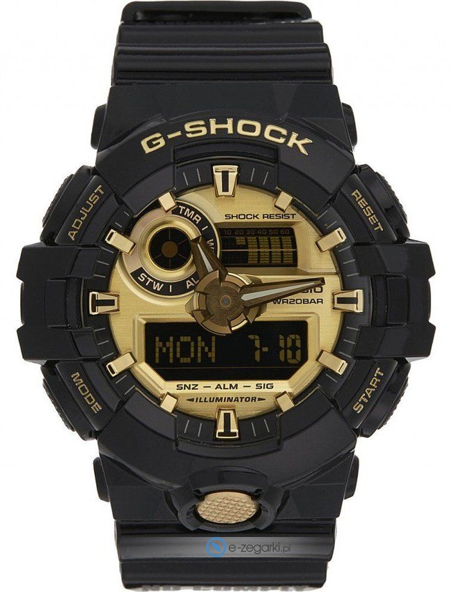 Zegarek męski GA-710GB-1ALTD marki Casio to dobre połączenie funkcjonalności oraz modnego designu. Model ten w gamie innych zegarków tego producenta występuje w kolekcji Casio G-Shock. Zegarek ten pokazuje godzinę w formacie analogowo - cyfrowym dzięki temu odczyt jest intuicyjny. Koperta szeroka jest na 53 mm oraz ma grubość 18 mm.