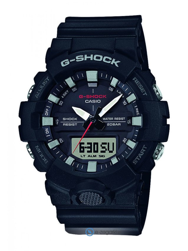 Zegarek GA-800-1AER wyposażony jest w mechanizm zasilany klasyczną baterią kwarcową. System wstrząsoodporny gwarantuje bezpieczeństwo zegarka w każdych warunkach, dzięki temu masz pewność, że zegarek nie zostanie zniszczony nawet w trudnych,ekstremalnych sytuacjach.