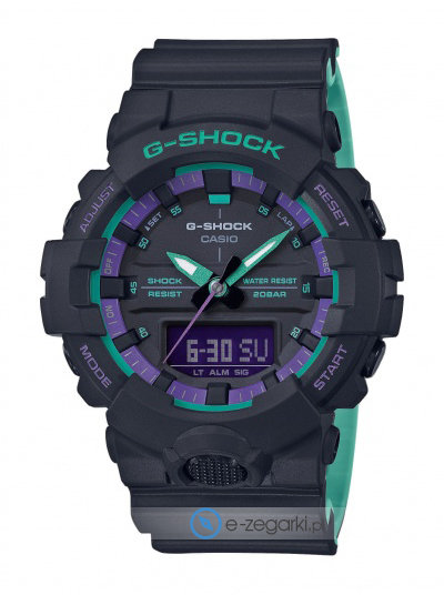 Zegarek GA-800BL-1AER posiada kwarcowy mechanizm zasilany normalną baterią. System wstrząsoodporny zabezpiecza zegarek przeciwko wstrząsom i uderzeniom.