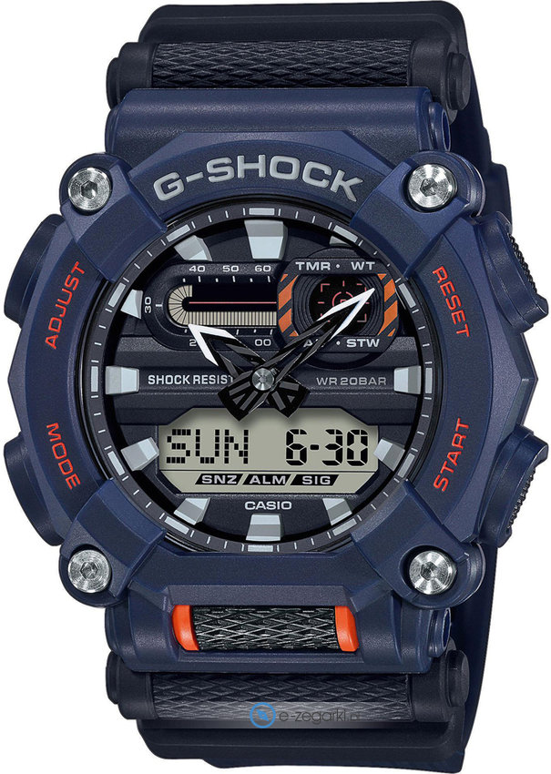 Zegarek męski GA-900-2AER marki Casio to dobre połączenie funkcjonalności a także modnego designu. Model ten występuje w serii Casio G-Shock. Charakter zapewnia wysokiej jakości cyferblat w kolorze ciemnym. Pokazana metodą analogowo - cyfrową bieżąca godzina jest czytelna i szybka do odczytania. Koperta szeroka jest na 49.5 mm oraz ma grubość 16.9 mm - w kształcie okrągłym.