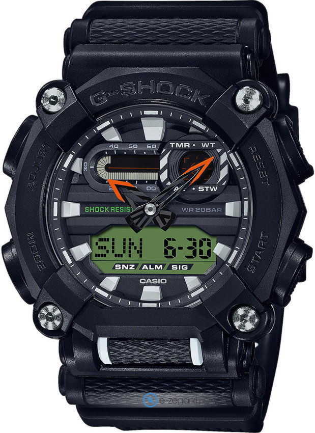 Zegarek GA-900E-1A3ER wyposażony jest w mechanizm zasilany tradycyjną baterią kwarcową. System wstrząsoodporny umożliwia bezpieczeństwo zegarka w każdych warunkach, dzięki temu masz pewność, że zegarek nie zostanie zniszczony nawet w trudnych,ekstremalnych sytuacjach.