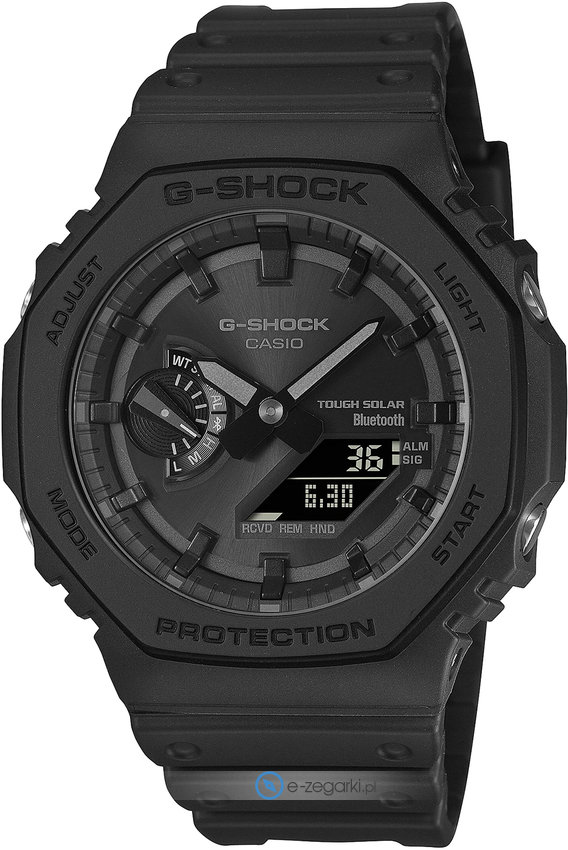 Dodatkowo zegarek Casio GA-B2100-1A1ER jest wyposażony w funkcje takie jak bluetooth z pomocą którego połączymy zegarek z telefonem.