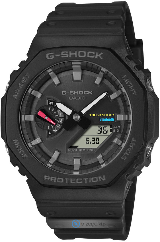 Zegarek ten to tzw Smartwatch - jest wyposażony w moduł Smart umożliwiający połączenie zegarka ze smartfonem i obsługę dodatkowych opcji z pomocą specjalnej aplikacji zainstalowanej w smartphonie. Zegarek GA-B2100-1AER posiada mechanizm solarny zasilany dowolnym źródłem światła.