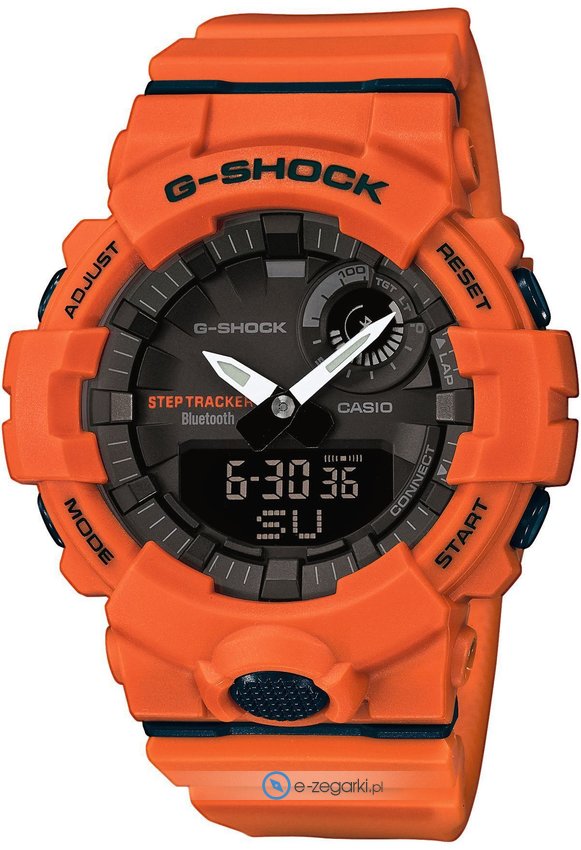 Zegarek GBA-800-4AER marki Casio to elegancki zegarek naręczny męski, który wyposażono w pomysłowe rozwiązania i funkcje. Model ten zalicza się do kolekcji Casio G-Shock. Pokazana metodą cyfrową aktualna godzina jest czytelna i łatwa do sprawdzenia. Koperta jest pokryta kolorem pomarańczowym szeroka jest na 48.6 mm oraz ma grubość 15.5 mm - charakteryzuje się okrągłym kształtem.