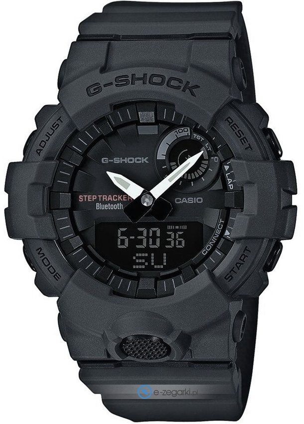 Wśród innych cech zegarka Casio GBA-800-8AER można wymienić bluetooth z pomocą którego połączymy zegarek ze smartwatchem.