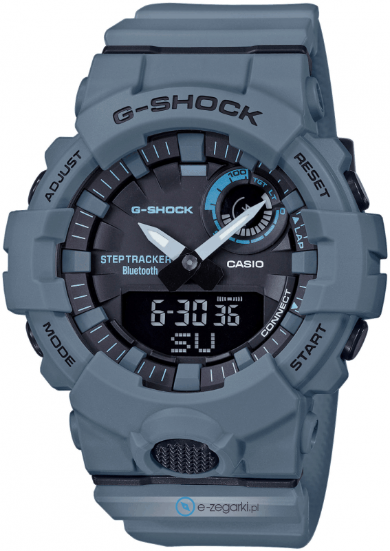 Smartwatch - wykorzystanie nowoczesnej technologii Smart powoduje, że zegarek ten ma zdecydowanie więcej możliwości niż przeciętny czasomierz, wszystko dzięki połączeniu z telefonem. Po zainstalowaniu aplikacji dostarczanej przez producenta w telefonie mamy do dyspozycji dodatkowe opcje zegarka. Model GBA-800UC-2AER posiada mechanizm zasilany tradycyjną baterią kwarcową.