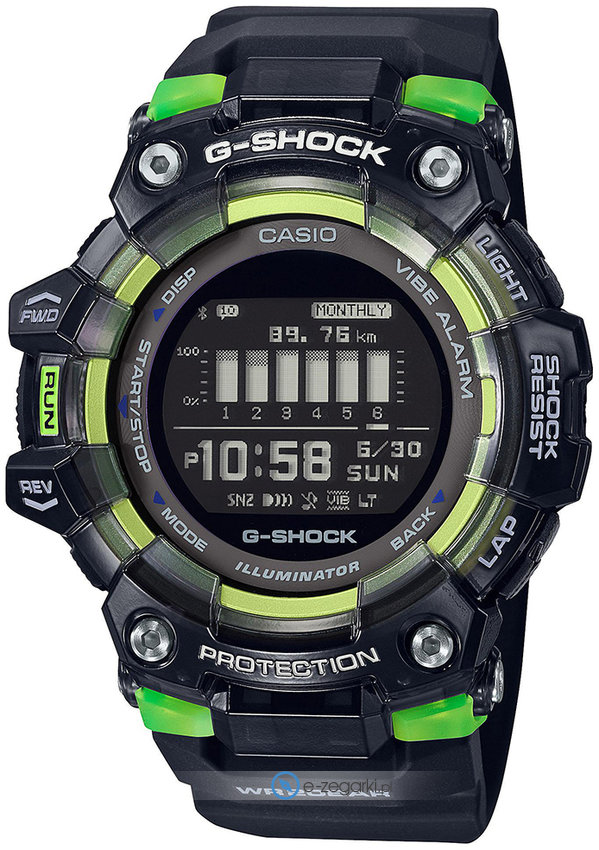 Dodatkowo zegarek Casio GBD-100SM-1ER jest wyposażony w funkcje takie jak wskaźnik prędkości jak również bluetooth z pomocą którego połączymy zegarek ze smartwatchem.