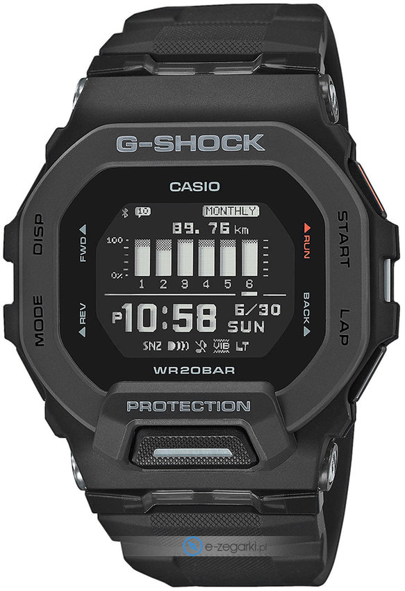 Dodatkowo zegarek Casio GBD-200-1ER posiada funkcje takie jak bluetooth z pomocą którego połączymy zegarek ze smartwatchem.