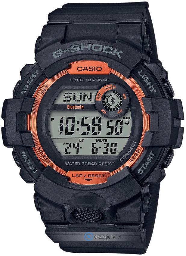 Dodatkowo model Casio GBD-800SF-1ER jest wyposażony w funkcje takie jak bluetooth z pomocą którego sparujemy zegarek z telefonem.