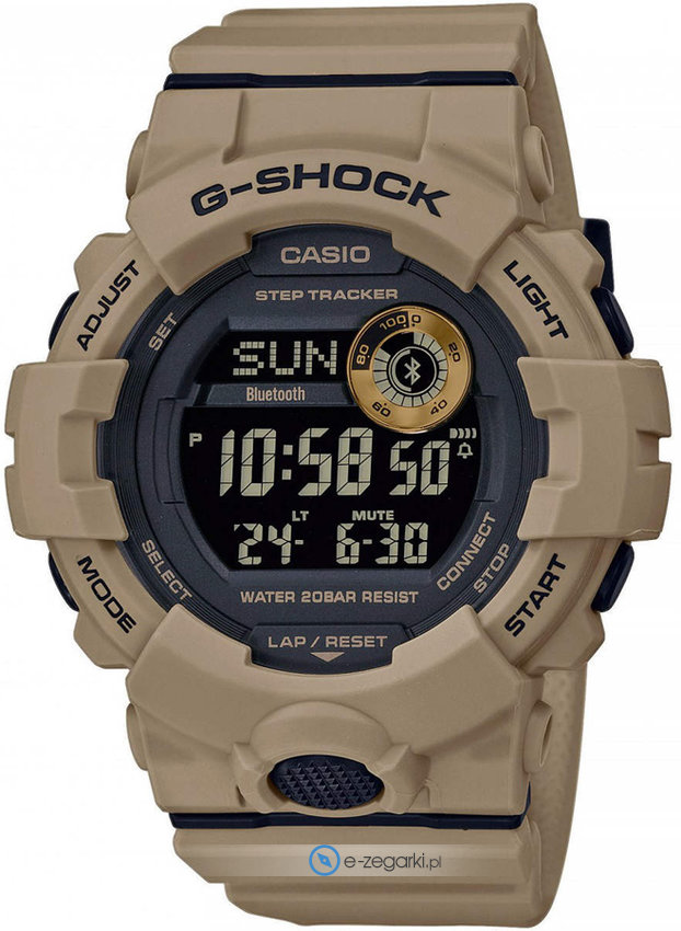 Dodatkowo zegarek Casio GBD-800UC-5ER posiada funkcje takie jak bluetooth z pomocą którego sparujemy zegarek ze smartwatchem.