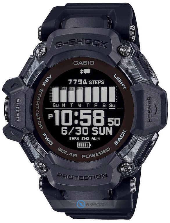 Smartwatch - zastosowanie nowoczesnej technologii Smart powoduje, że zegarek ten ma zdecydowanie więcej możliwości niż przeciętny czasomierz, wszystko dzięki połączeniu z telefonem. Po zainstalowaniu specjalnej aplikacji producenta w smartphonie mamy do dyspozycji dodatkowe funkcje zegarka. Zegarek GBD-H2000-1BER został wyposażony w mechanizm solarny zasilany dowolnym źródłem światła.