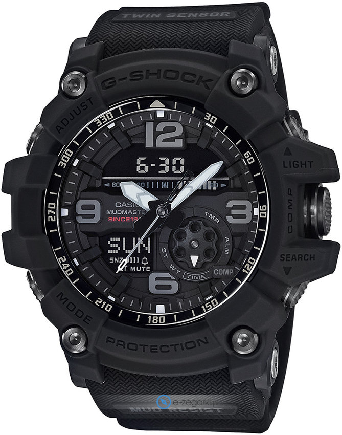 Model męski GG-1035A-1AER z kolekcji Casio G-Shock marki Casio. Tarcza zegarka w kolorze czarnym. Pokazana metodą analogowo - cyfrową aktualna godzina jest czytelna i prosta do sprawdzenia. Koperta szeroka jest na 52 mm oraz ma grubość 17 mm.