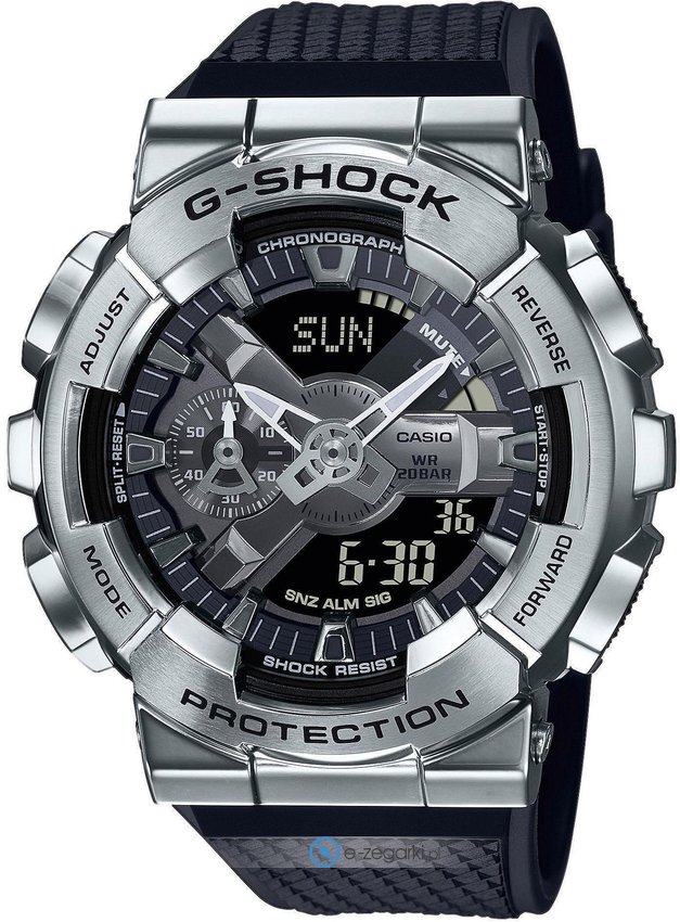 Zasilanie zegarka GM-110-1AER to klasyczna bateria kwarcowa. Zwiększona odporność na wstrząsy oraz uderzenia zapewniona przez system wstrząsoodporny.