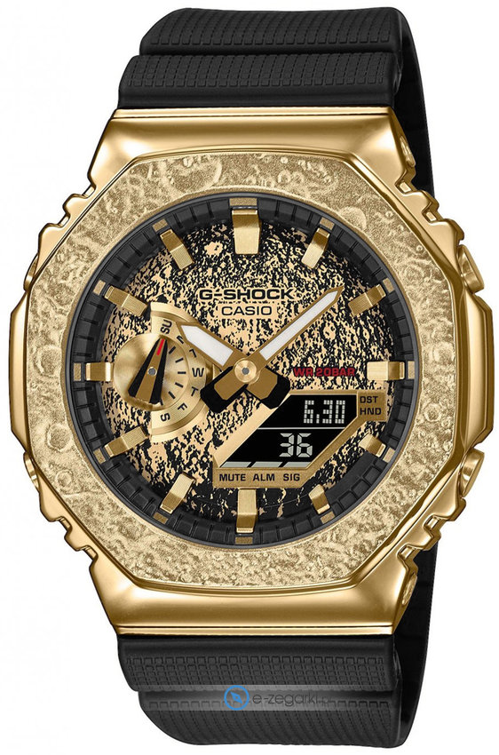 Model męski GM-2100MG-1AER zalicza się do rodziny Casio G-Shock marki Casio. Niebanalny wygląd czasomierza uzyskano m.in. poprzez cyferblat w kolorze czarnym. Zegarek ten prezentuje aktualny czas w formacie analogowo - cyfrowym dzięki temu odczyt jest intuicyjny. Koperta jest w kolorze złotym szeroka jest na 44 mm oraz ma grubość 12 mm - w kształcie okrągłym.