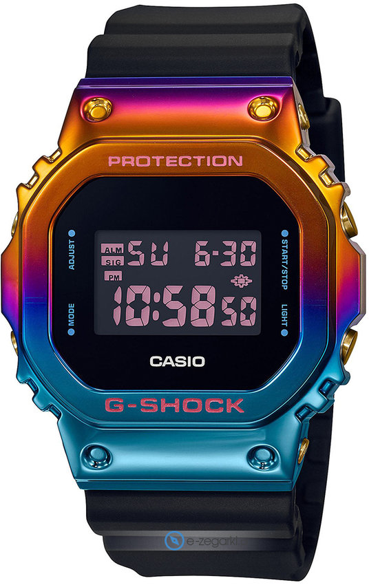 Zegarek GM-5600SN-1ER posiada kwarcowy mechanizm zasilany normalną baterią. Pasek w tonacji koloru czarnego wykonany jest z wysokiej jakości tworzywa sztucznego.