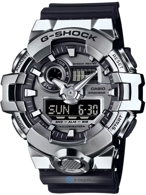 Zegarek męski GM-700-1AER marki Casio to dobre połączenie funkcjonalności a także ciekawego wzornictwa. Model ten zalicza się do serii Casio G-Shock. Wysokiej jakości tarczę zegarka pokryto czarnym kolorem. Zegarek ten pokazuje godzinę w formacie analogowo - cyfrowym dzięki temu odczyt jest bardzo łatwy. Koperta została ozdobiona kolorem srebrnym szeroka jest na 53 mm oraz ma grubość 18 mm - ma okrągły kształt.