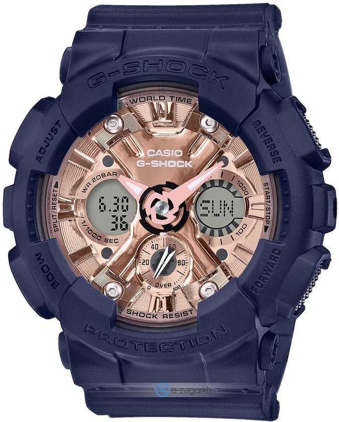 Zegarek GMA-S120MF-2A2ER wyposażony jest w mechanizm zasilany normalną baterią kwarcową. System wstrząsoodporny gwarantuje bezpieczeństwo zegarka w każdych warunkach, dzięki temu masz pewność, że zegarek nie zostanie zniszczony nawet w trudnych,ekstremalnych sytuacjach.