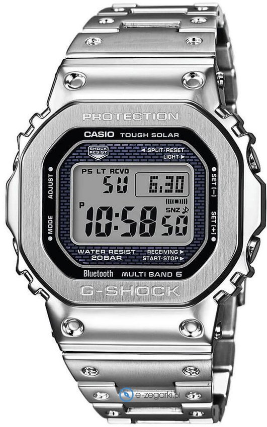 Zegarek męski GMW-B5000D-1ER marki Casio to stylowe połączenie funkcjonalności a także ciekawego wzornictwa. Model ten pochodzi z serii Casio G-Shock. Zegarek ten prezentuje aktualny czas w formacie cyfrowym dzięki czemu odczyt jest bardzo łatwy. Koperta jest w kolorze srebrnym szeroka jest na 43.2 mm oraz ma grubość 13 mm - cechuje się prostokątnym kształtem.
