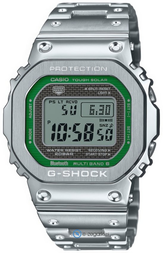 Zegarek GMW-B5000D-3ER został wyposażony w mechanizm solarny zasilany jakimkolwiek źródłem światła. Odporna na korozję oraz oddziaływanie czynników atmosferycznych bransoleta koloru srebrnego cechuje się jakością, a także trwałością.