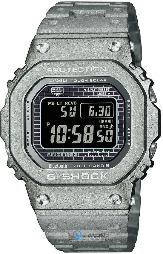 Model męski GMW-B5000PS-1ER marki Casio z kolekcji Casio G-Shock. Ciekawy wygląd zegarka osiągnięto również dzięki tarczy w kolorze szarym. Zegarek ten prezentuje godzinę w formacie cyfrowym dzięki czemu odczyt jest bardzo łatwy. Koperta w odcieniach koloru srebrnego szeroka jest na 43 mm oraz ma grubość 13 mm - cechuje się prostokątnym kształtem.