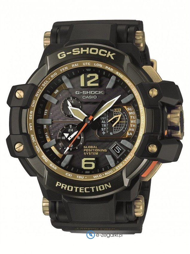 Model męski GPW-1000GB-1AER zalicza się do kolekcji Casio G-Shock marki Casio. Aktualna godzina prezentowana jest w sposób analogowy co bez trudu pozwala ją odczytać. Koperta szeroka jest na 56 mm oraz ma grubość 18 mm.