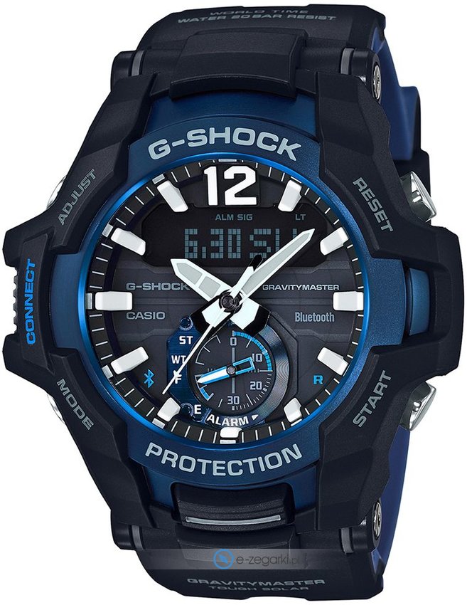 Wśród dodatkowych cech zegarka Casio GR-B100-1A2ER można wyróżnić bluetooth z pomocą którego sparujemy zegarek ze smartwatchem.