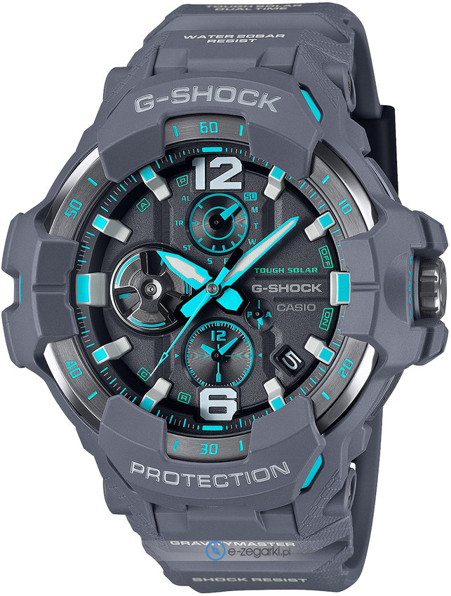 Model męski GR-B300-8A2ER marki Casio należy do rodziny Casio G-Shock. Charakteru dodaje wysokiej jakości tarcza w kolorze szarym. Godzina zaprezentowana jest w sposób analogowy co bez trudu pozwala ją odczytać. Koperta jest pokryta kolorem szarym szeroka jest na 54 mm oraz ma grubość 16 mm - ma okrągły kształt.
