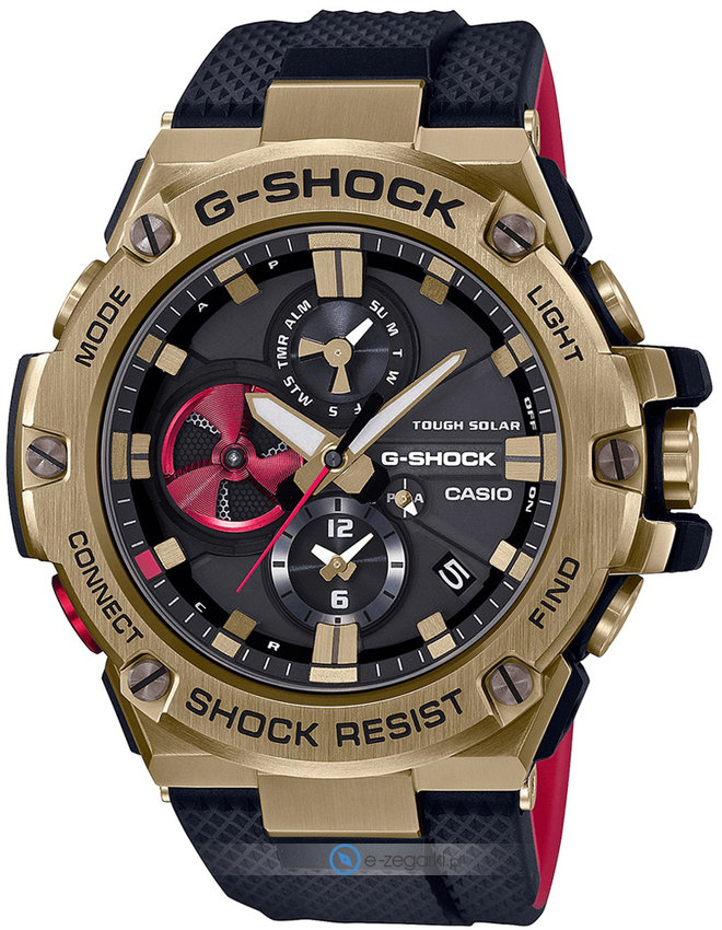 Smartwatch - model ten wyposażono w inteligentny moduł Smart, który pozwala na dokonywanie połączeń z telefonem. Dzięki tej opcji mamy dodyspozycji więcej funkcji, które ustawiamy za pomocą smartphona. Zegarek GST-B100RH-1AER posiada mechanizm solarny zasilany jakimkolwiek źródłem światła.