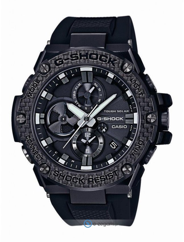 Zegarek ten to tzw Smartwatch - jest wyposażony w segment Smart umożliwiający połączenie zegarka z telefonem i obsługę dodatkowych opcji z pomocą specjalnej aplikacji zainstalowanej w smartphonie. Zegarek GST-B100X-1AER posiada mechanizm solarny zasilany jakimkolwiek źródłem światła.