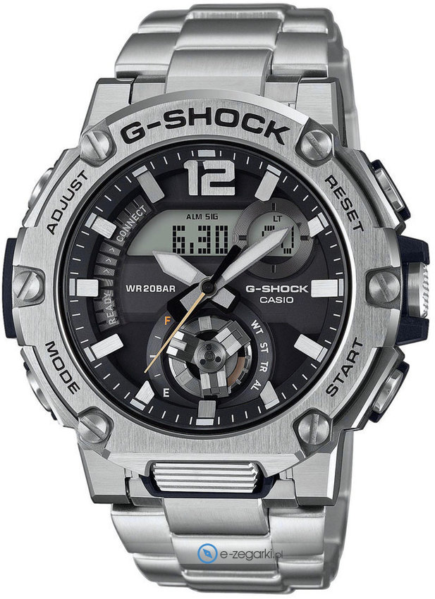 Wśród innych cech zegarka Casio GST-B300SD-1AER można wyróżnić bluetooth z pomocą którego sparujemy zegarek ze smartwatchem.