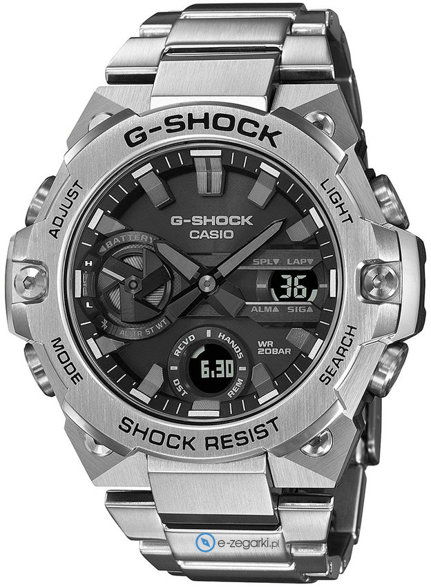 Zegarek GST-B400D-1AER posiada mechanizm solarny zasilany jakimkolwiek źródłem światła. Wytrzymała bransoleta koloru srebrnego zrobiona ze stali nierdzewnej zapewnia wysoką jakość oraz trwałość.