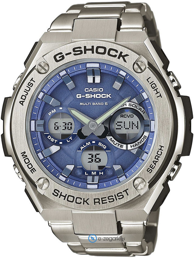 Zegarek męski GST-W110D-2AER marki Casio to stylowe połączenie funkcjonalności oraz ciekawego designu. Model ten jest z serii Casio G-Shock. Charakter zapewnia wysokiej jakości tarcza w kolorze niebieskim. Zaprezentowana metodą cyfrową bieżąca godzina jest czytelna i łatwa do sprawdzenia. Koperta szeroka jest na 52 mm oraz ma grubość 16 mm - w kształcie okrągłym.