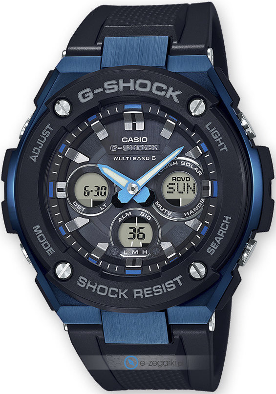 Model męski GST-W300G-1A2ER marki Casio należy do rodziny Casio G-Shock. Charakterystyczny wygląd czasomierza osiągnięto m.in. poprzez tarczę w kolorze czarnym. Pokazana metodą analogowo - cyfrową bieżąca godzina jest czytelna i łatwa do odczytania. Koperta szeroka jest na 46 mm oraz ma grubość 16 mm - w kształcie okrągłym.
