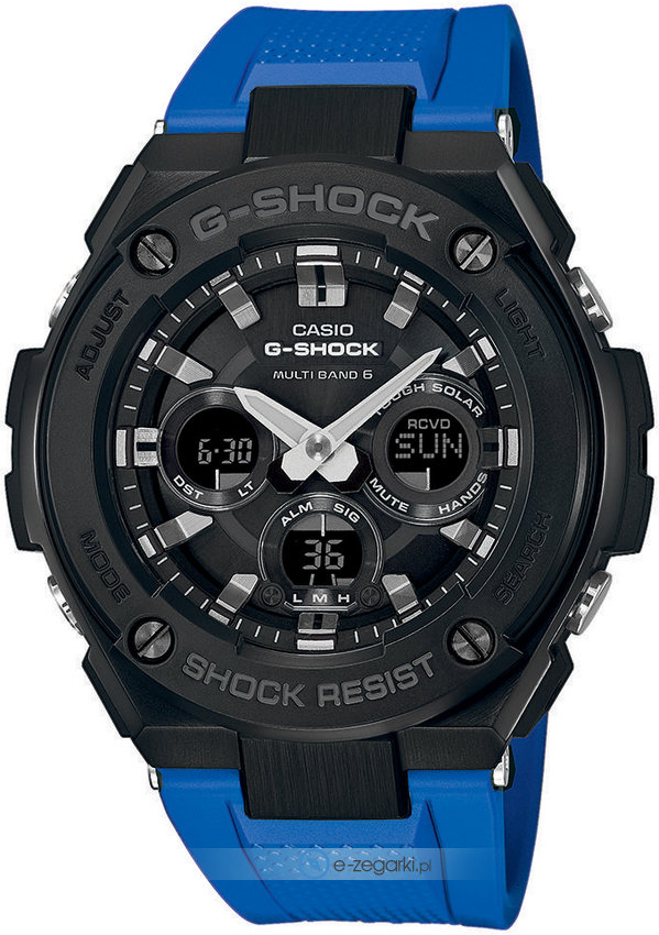 W zegarku GST-W300G-2A1ER zastosowano mechanizm solarny zasilany jakimkolwiek źródłem światła. Zwiększona odporność na wstrząsy oraz uderzenia zapewniona przez system wstrząsoodporny.