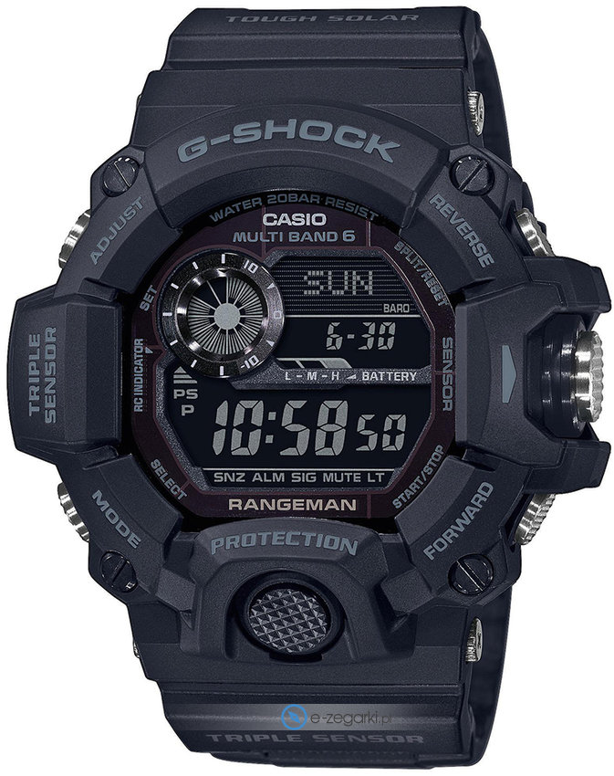 Zegarki Casio G-Shock Rangeman powstały z myślą o wyjątkowo wymagających użytkownikach. Wytrzymają w większości wszystko (mocne wstrząsy, duże ciśnienie wody, błoto, kurz, zmiany temperatury), posiadają dodatkowe gumowe wzmocnienia konstrukcji zarówno bransolety i paska. G-Shock Rangeman to prawdziwa perła dla miłośników długich oraz wymagających outdoorowych wycieczek. Czasomierz zapewnia dostęp do takich funkcji jak np.: barometr, termometr, stoper, timer, kalendarz oraz barometryczny kompas. Trzeba także dodać, że modele z rodziny Rangeman wykorzystują technologię solarną o nazwie Tough Solar - ogniwa rozmieszczone wokół wyświetlacza zmieniają energię słoneczną na elektryczną, która gwarantuje ciągłą pracę.