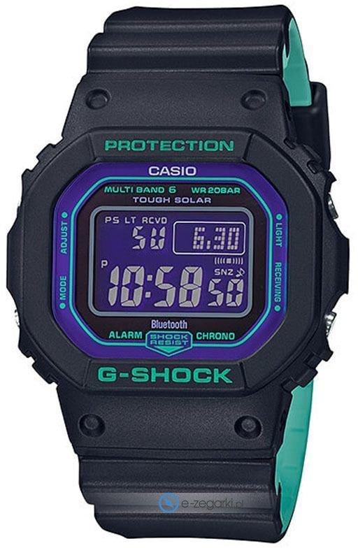 Dodatkowo zegarek Casio GW-B5600BL-1ER jest wyposażony w funkcje takie jak bluetooth z pomocą którego sparujemy zegarek ze smartwatchem.