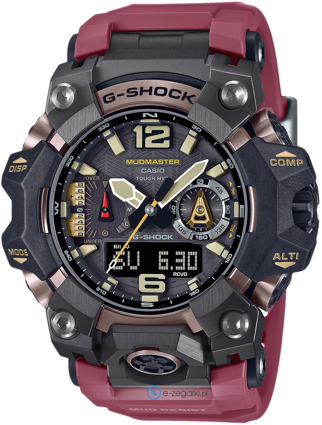 Zegarek GWG-B1000-1A4ER został wyposażony w mechanizm solarny zasilany dowolnym źródłem światła. Pasek jest w kolorze czerwonym wykonany jest z wysokiej jakości tworzywa sztucznego.