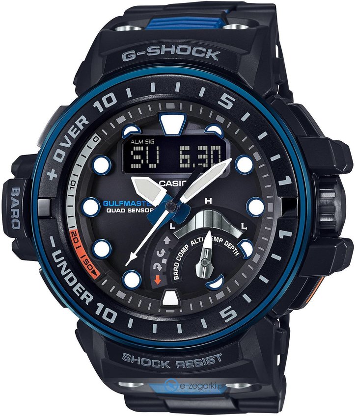 Oferta G-Shock Gulfmaster to seria stawiająca na sportowy image i wielość zadań dodatkowych. Zegarki Gulfmaster to czasomierze charakteryzujące się przede wszystkim nowoczesnym wyglądem i aż trzema filarami wytrzymałości - wysoką wodoszczelnością, wytrzymałością na wstrząsy oraz zastosowaniem wytrzymałych komponentów. Modele te posiadają wszystkie elementarne funkcje, rozbudowane o cyfrowy kompas, czas z podziałem na strefy czasowe, odczyt analogowo-cyfrowy, barometr, termometr, indykator faz księżyca, oraz pionierskie solarne zasilanie. Warto zasygnalizować również o Waveceptor czyli synchronizacji czasu za pomocą fal radiowych jak również system pomiaru poziomu naładowania akumulatora, na skutek czego chronometry należące do tej kolekcji są wstanie sprostać każdym warunkom i miejscom, w których będzie im dane odmierzać czas.