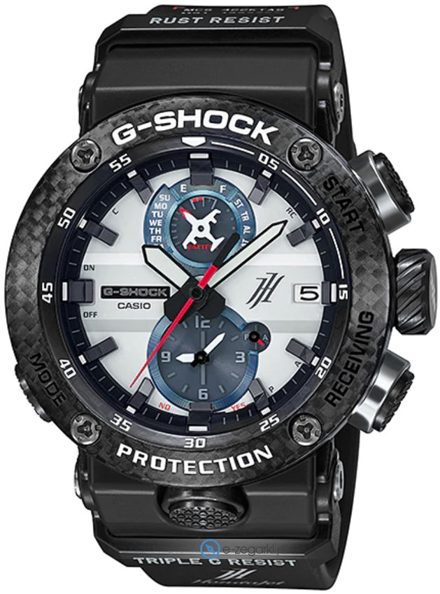 Casio GWR-B1000HJ-1ADR to męski zegarek kierowany dla osób szukających zegarka z serii Casio G-Shock. Aktualna godzina prezentowana jest w sposób analogowy co niezmiernie łatwo pozwala ją odczytać. Koperta została ozdobiona kolorem czarnym szeroka jest na 46.4 mm oraz ma grubość 16.9 mm - ma okrągły kształt.