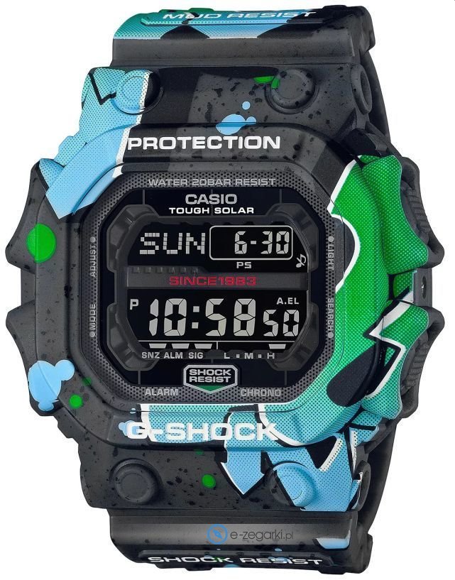 Zegarek GX-56SS-1ER posiada mechanizm solarny zasilany dowolnym źródłem światła. Pasek czarnego koloru wykonany jest z wysokiej jakości tworzywa sztucznego.