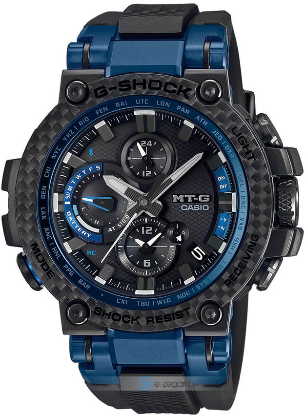 Wśród dodatkowych cech zegarka Casio MTG-B1000XB-1AER można wyróżnić bluetooth z pomocą którego połączymy zegarek ze smartwatchem.