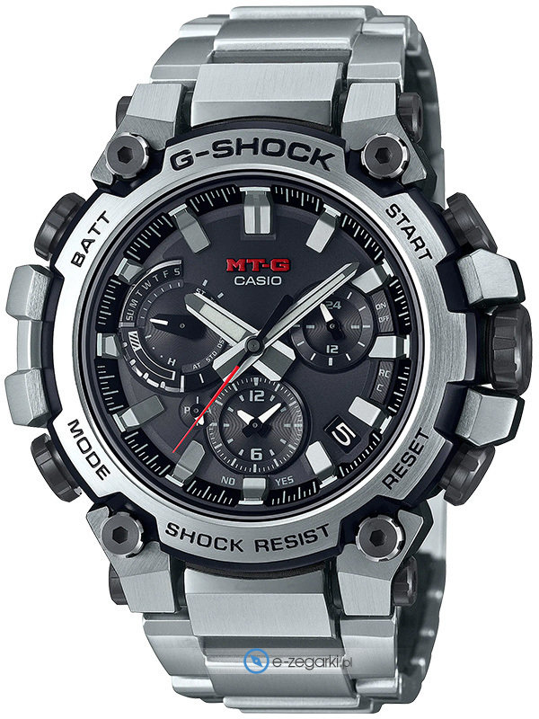 Zegarek MTG-B3000D-1AER został wyposażony w mechanizm solarny zasilany jakimkolwiek źródłem światła. Odporna na korozję oraz oddziaływanie czynników atmosferycznych bransoleta jest w kolorze srebrnym zapewnia wysoką jakość i trwałość.