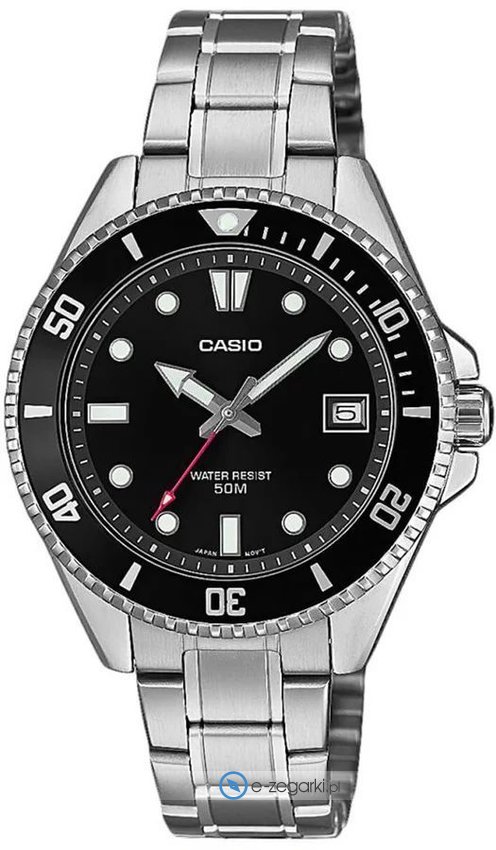 Zegarek męski MDV-10D-1A1VEF marki Casio to idealna pozycja dla osób ceniących sobie dbałość o detale oraz bezawaryjne funkcjonowanie mechanizmów. Tarcza zegarka jest w kolorze czarnym. Godzina pokazywana jest w sposób analogowy co niezmiernie łatwo pozwala ją odczytać. Koperta w barwach koloru srebrnego szeroka jest na 39 mm oraz ma grubość 10 mm - charakteryzuje się okrągłym kształtem.