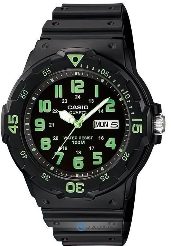 Zasilanie zegarka MRW-200H-3BV to klasyczna bateria kwarcowa. Pasek w odcieniach koloru czarnego zrobiony jest z wysokiej jakości tworzywa sztucznego.