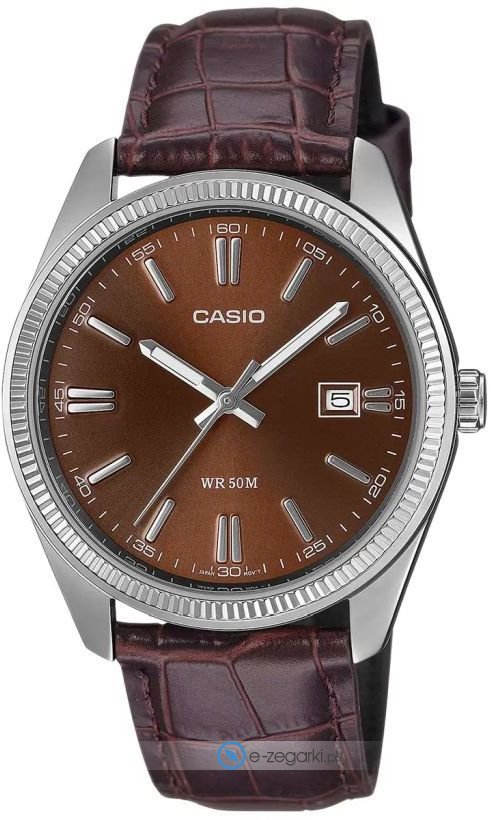Męski zegarek Casio MTP-1302PL-5AVEF to zegarek, który dzięki swemu wzornictwu zawsze będzie prezentował się dobrze. Charakterystyczny wygląd czasomierza osiągnięto także dzięki tarczy w kolorze brązowym. Aktualna godzina zaprezentowana jest w sposób analogowy co bez trudu pozwala ją odczytać. Koperta jest w kolorze srebrnym szeroka jest na 38 mm oraz ma grubość 10 mm - ma okrągły kształt.