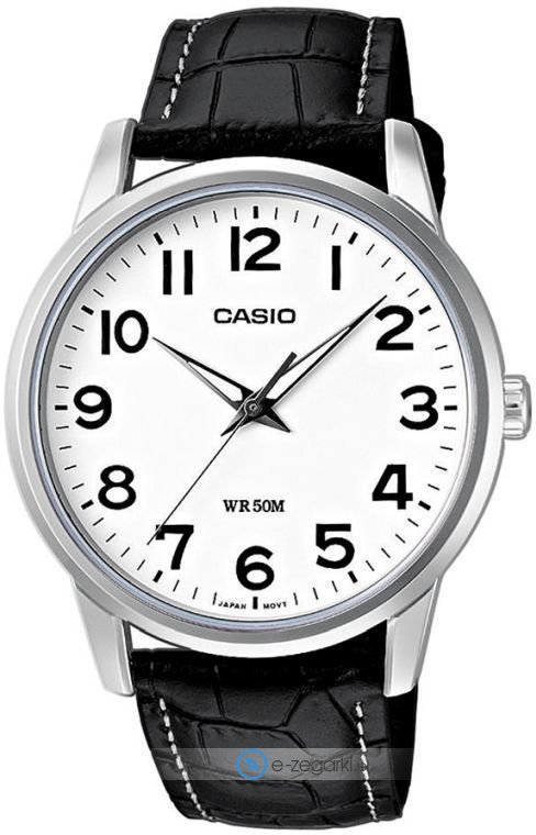 Model MTP-1303PL-7BVEG marki Casio to stylowy zegarek naręczny męski, który jest wyposażony w ciekawe rozwiązania oraz funkcje. Ciekawą stylistykę zegarka uzyskano z pomocą tarczy w kolorze białym. Zegarek ten prezentuje aktualny czas w formacie analogowym dzięki temu odczyt jest bardzo łatwy. Koperta jest w kolorze srebrnym szeroka jest na 42 mm oraz ma grubość 8 mm - cechuje się okrągłym kształtem.