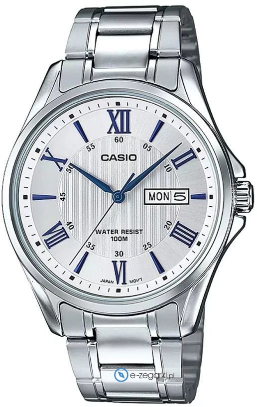 Zegarek męski MTP-1384D-7A2VEF marki Casio to idealna propozycja dla osób ceniących sobie dbałość o szczegóły a także bezproblemowe działanie mechanizmów. Wysokiej trwałości cyferblat zegarka pokryto srebrnym kolorem. Godzina prezentowana jest w sposób analogowy co intuicyjnie pozwala ją odczytać. Koperta jest ozdobiona kolorem srebrnym szeroka jest na 41 mm oraz ma grubość 10 mm - charakteryzuje się okrągłym kształtem.