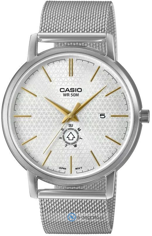 Zegarek MTP-B125M-7AVEF posiada kwarcowy mechanizm zasilany normalną baterią. Odporna na korozję oraz oddziaływanie czynników atmosferycznych bransoleta koloru srebrnego cechuje się jakością, a także trwałością.