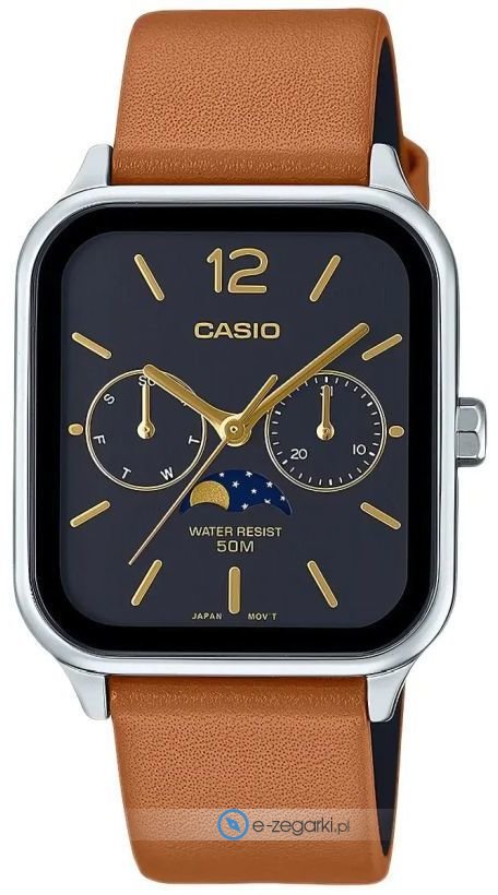 Męski zegarek Casio MTP-M305L-1AVER to zegarek, który dzięki swemu wzornictwu zawsze będzie prezentował się dobrze. Stylu dodaje wysokiej klasy tarcza w kolorze brązowym. Aktualna godzina prezentowana jest w sposób analogowy co intuicyjnie pozwala ją odczytać. Koperta jest pokryta kolorem srebrnym szeroka jest na 34 mm oraz ma grubość 9 mm - w kształcie okrągłym.
